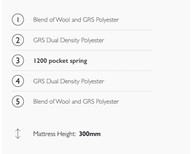 The ReActive™ pocket spring core is specially engineered to deliver utmost comfort, time after time. GRS polyester is made from recycled plastic bottles that otherwise would have gone to landfill.