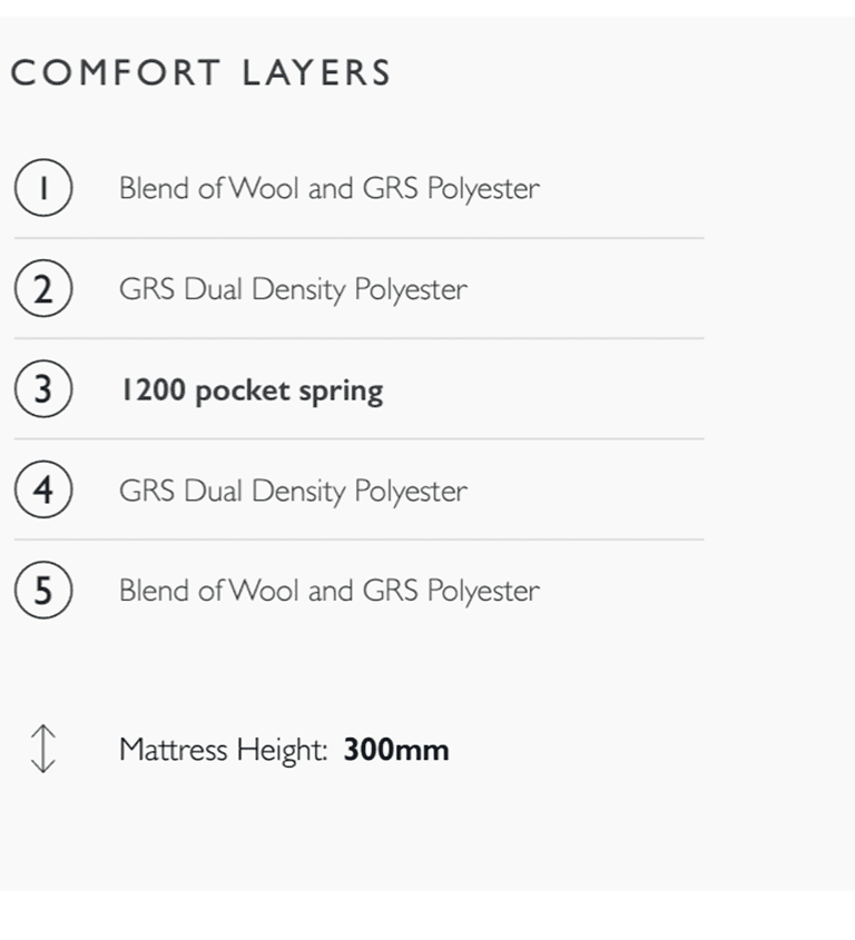 Our unique blend of wool and polyester creates an exquisite comfort layer which responds to fluctuations in body temperature.